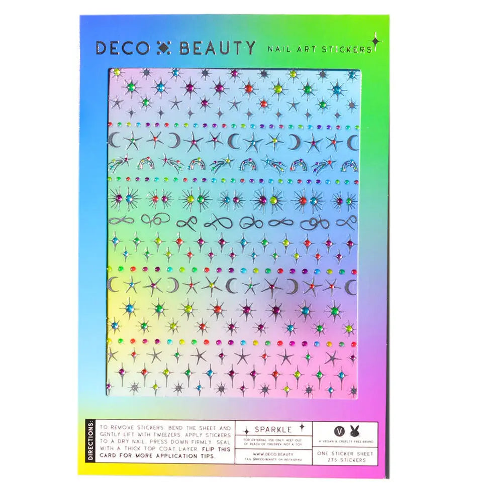 Les Deco Beauty Nail Art Stickers Sparkle font briller vos ongles comme un ciel étoilé. Avec des rainbow et silver designs, vous donnez à votre manucure la populaire twinkling nail trend dont tout le monde tombe amoureux.