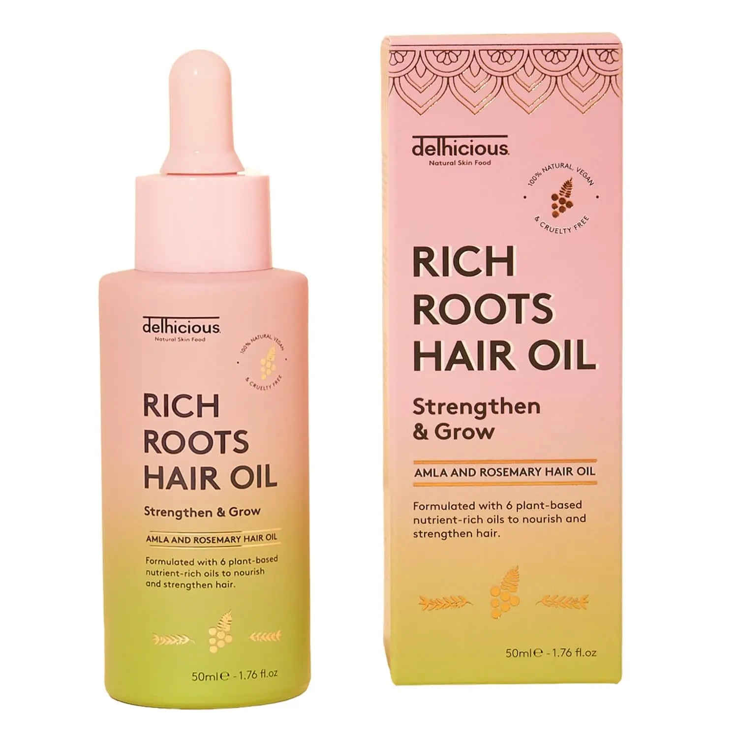 L’Delhicious Rich Roots Hair & Scalp Oil Amla & Rosemary est une huile ayurvédique puissante qui élève ta routine capillaire hebdomadaire. Cette formule combine six huiles végétales utilisées depuis des siècles dans la tradition indienne pour renforcer les cheveux, les nourrir en profondeur et stimuler leur croissance.