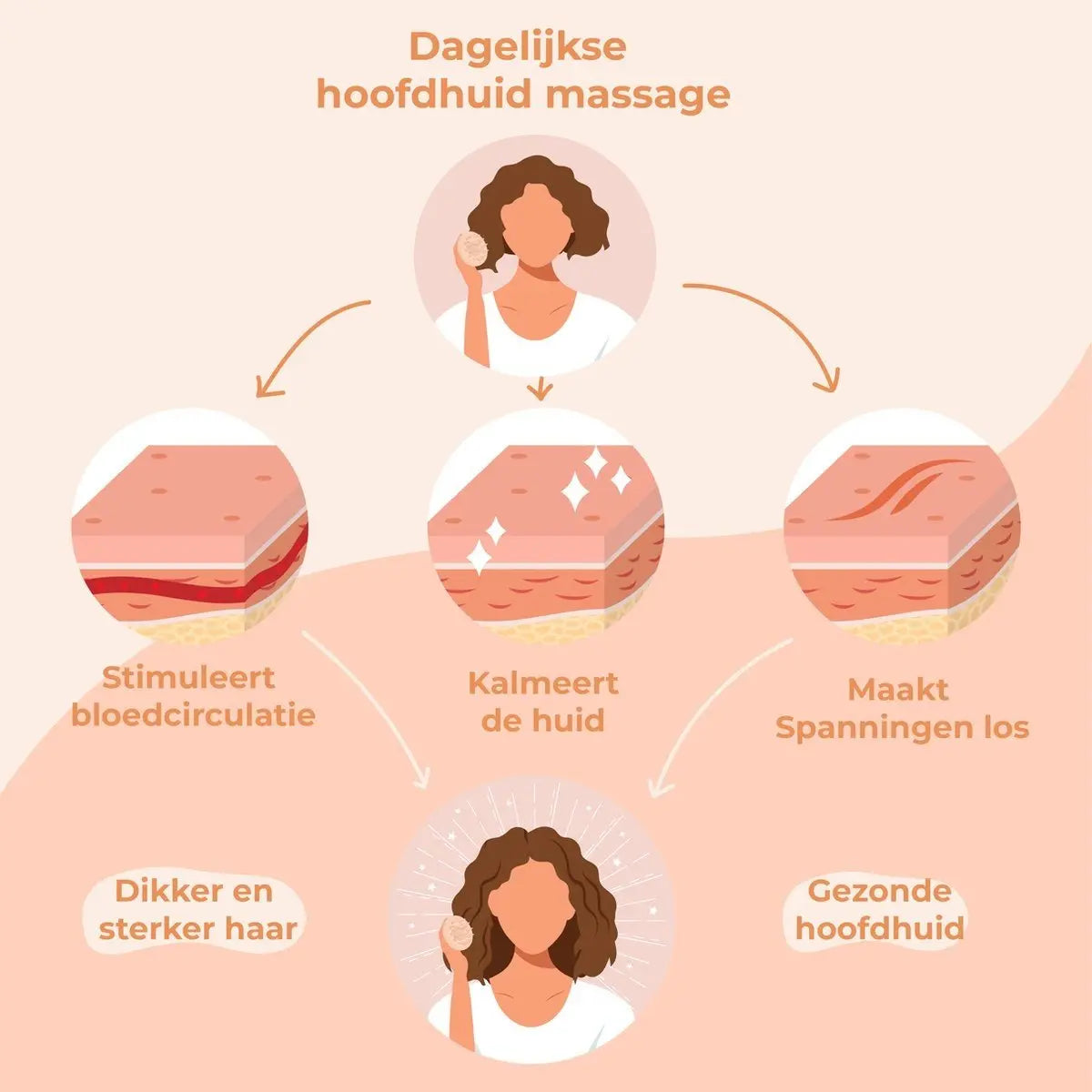 Un massage du cuir chevelu avec la brosse Destined améliore la santé de vos cheveux et offre une relaxation profonde. Un massage régulier peut réduire le stress et apaiser les démangeaisons du cuir chevelu. Ajoutez quelques gouttes d’huile essentielle pour une relaxation supplémentaire.