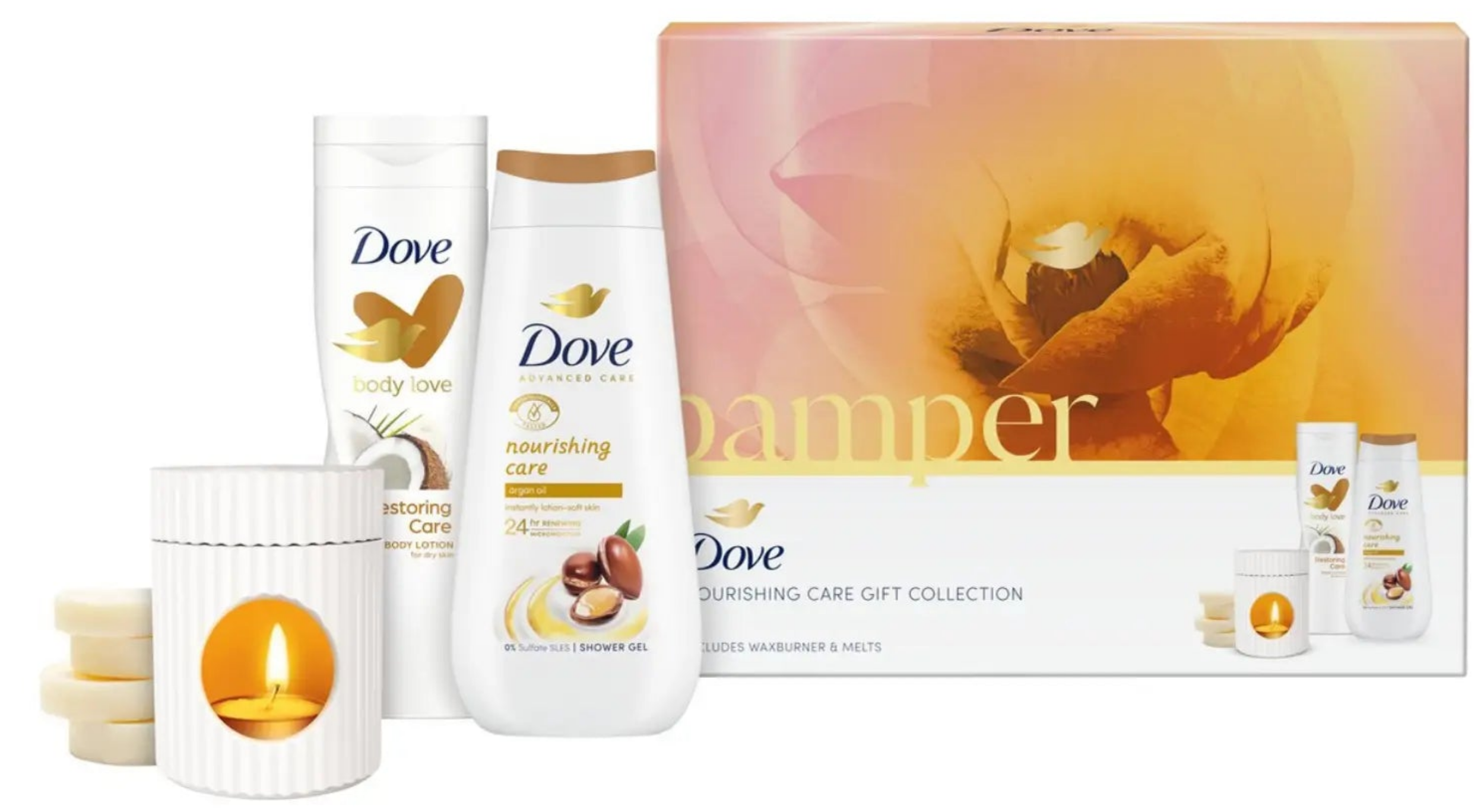 Dove Shower Gel (225 ml.) : Aqua, Cocamidopropyl Betaine, Sodium Hydroxypropyl Starch Phosphate, Lauric Acid, Sodium Lauroyl Glycinate, Sodium Lauroyl Isethionate, Sodium Chloride, Glycerin, Hydrogenated Soybean Oil, Helianthus Annuus Seed Oil, Parfum, Sodium Benzoate, Caprylyl Glycol, Sodium Hydroxide, Citric Acid, Sodium Isethionate, Stearic Acid, Palmitic Acid, Sodium Gluconate, Argania Spinosa Kernel Oil, Caprylic Acid, Guar Hydroxypropyltrimonium Chloride, Hydroxystearic Acid, Hydrogenated Vegetable Glycerides, Sodium Methyl Lauroyl Taurate, Hexyl Cinnamal, Limonene, Linalool.