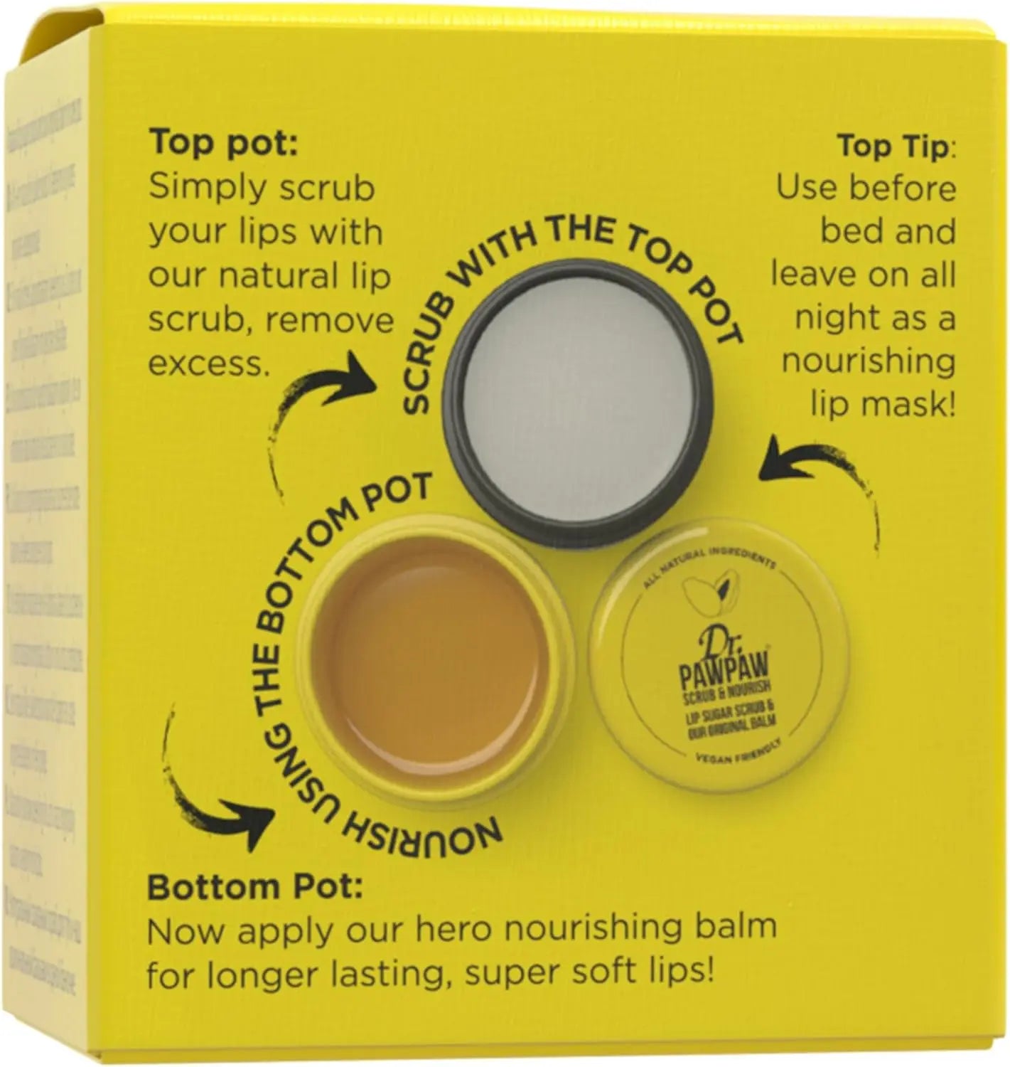 Le DR. PAWPAW Lip Scrub & Balm Duo est ton nouveau duo préféré pour des lèvres parfaitement soignées ! Ce set contient un gommage exfoliant pour les lèvres ainsi qu’un baume hydratant – idéal pour réparer, nourrir et protéger tes lèvres.