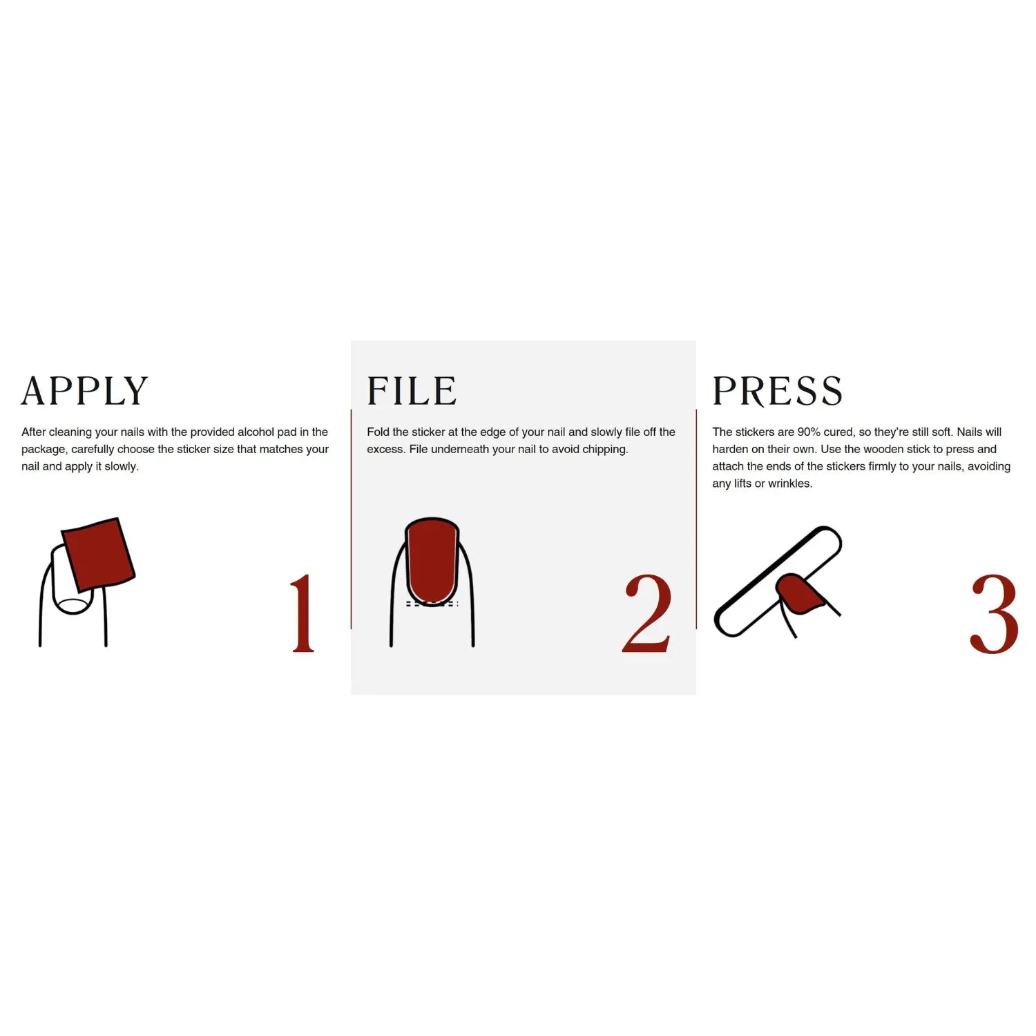 - Applique les strips sur tes ongles et appuie bien pour une adhérence parfaite.