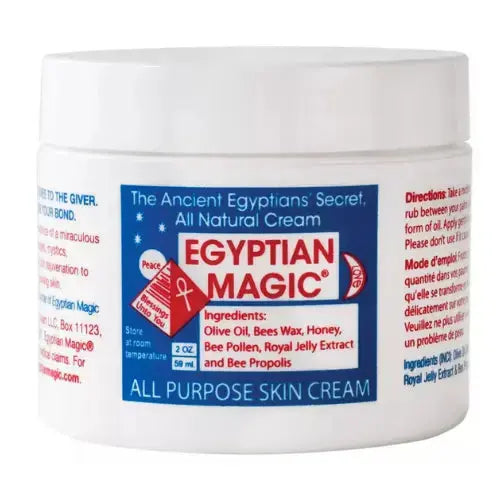 La magie égyptienne est composée de six des ingrédients hydratants les plus puissants de la nature. Ce mélange d'huile d'olive, de cire d'abeille, de miel, de pollen d'abeille, de gelée royale et de propolis est un amour 100% pur et naturel pour votre peau. Il fait des merveilles sur les peaux sèches et sensibles, les irritations, les cicatrices, l'eczéma et les vergetures.