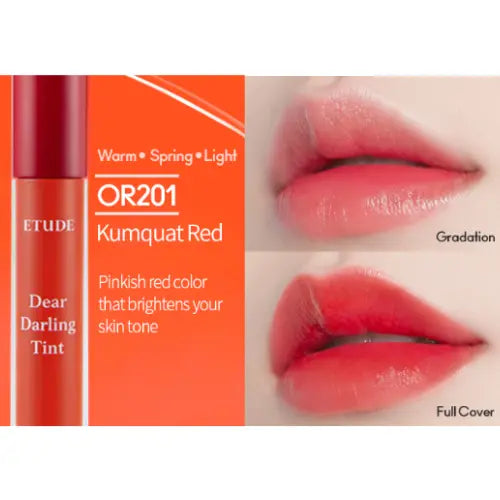 L'Etude House Dear Darling Water Gel Tint OR201 Kumquat Red est une belle teinte à lèvres hydratante qui prend soin de vos lèvres et leur donne une belle couleur. Égayez immédiatement votre maquillage avec cette teinte à lèvres !