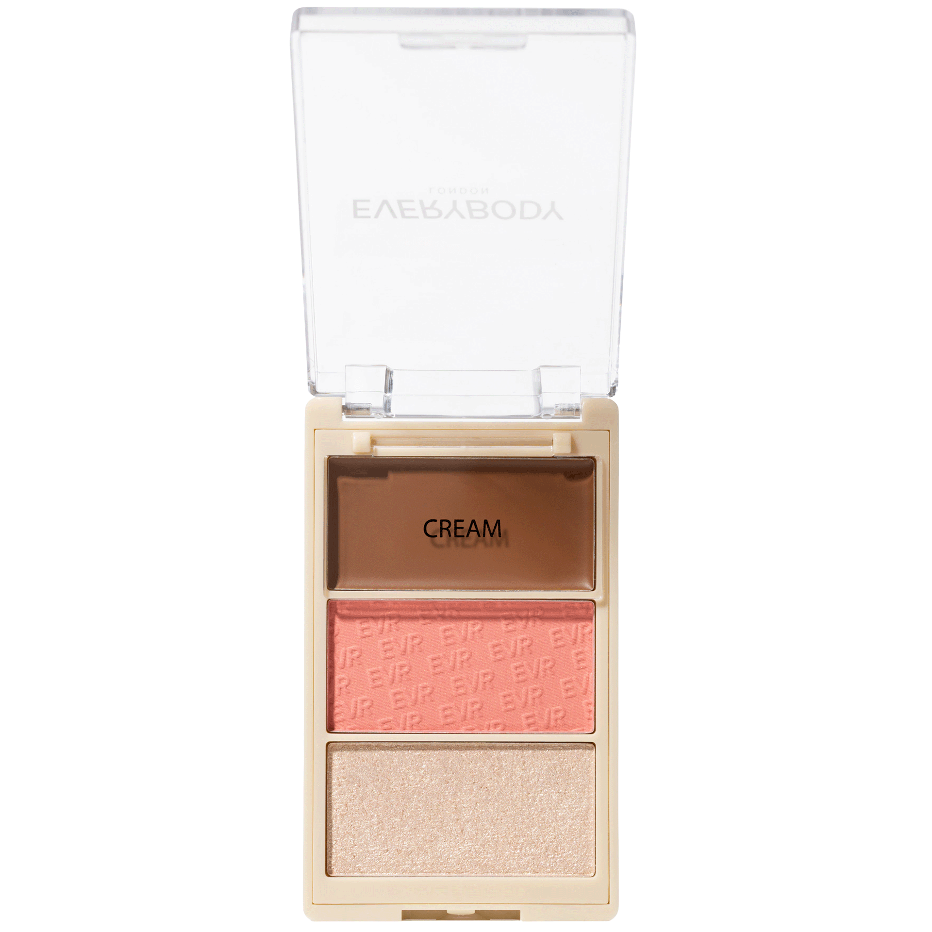 La palette Everybody London Trio Face Palette Glow Me Peachy est ton raccourci vers un glow pêche et des traits parfaitement définis, le tout dans un format compact. Avec un bronzer crémeux facile à estomper, un blush pêche doux pour un effet naturel et un highlighter lumineux qui fait rayonner ta peau, tu as littéralement tout ce qu’il te faut pour un look frais et ensoleillé.
