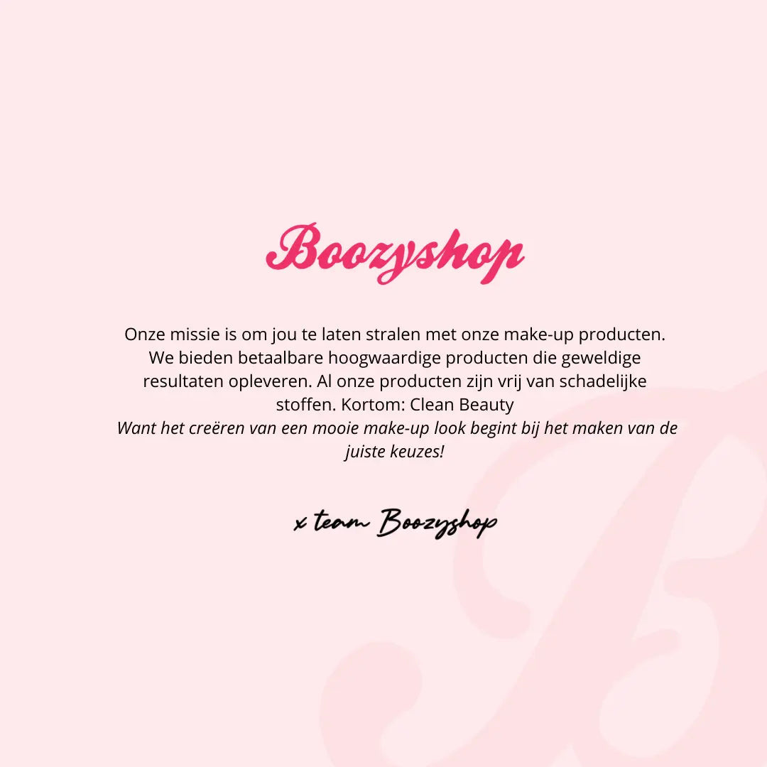 Chez Boozyshop, nous pensons qu'un maquillage parfait doit être accessible à tous, quels que soient leur sexe, leur couleur de peau ou leur identité. Nous sommes fiers que tous nos produits soient végétaliens et non testés sur les animaux. Nous soutenons fermement les produits de beauté honnêtes, fabriqués à partir d’ingrédients naturels et exempts d’ingrédients controversés. Notre maquillage est de haute qualité mais abordable, ce qui fait de nous la solution idéale pour tous ceux qui souhaitent créer un beau maquillage avec une finition parfaite.