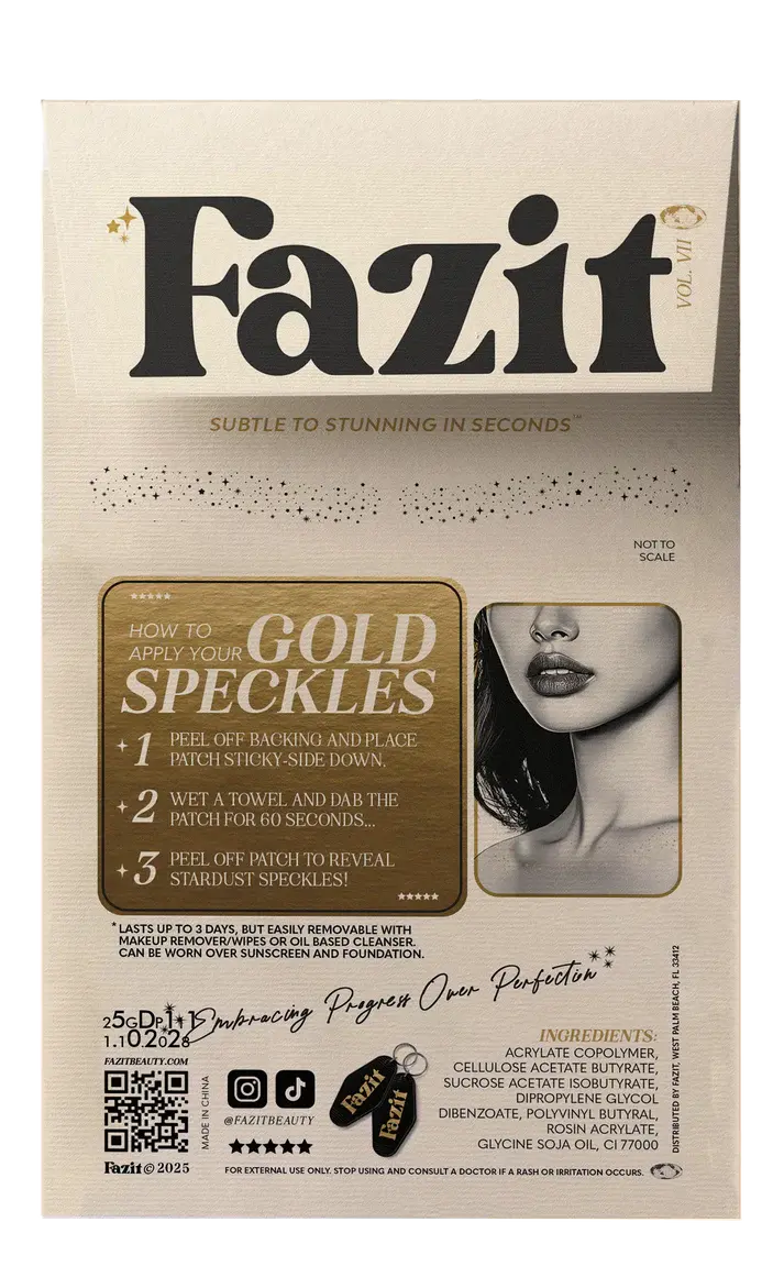 Le Fazit Decolletage Speckles Gold est votre arme secrète pour une touche scintillante instantanée sur vos clavicules. Ces patchs scintillants offrent à votre peau une lueur dorée subtile mais remarquable qui attire immédiatement l’attention — parfait pour une soirée ou simplement pour briller quand vous en avez envie.