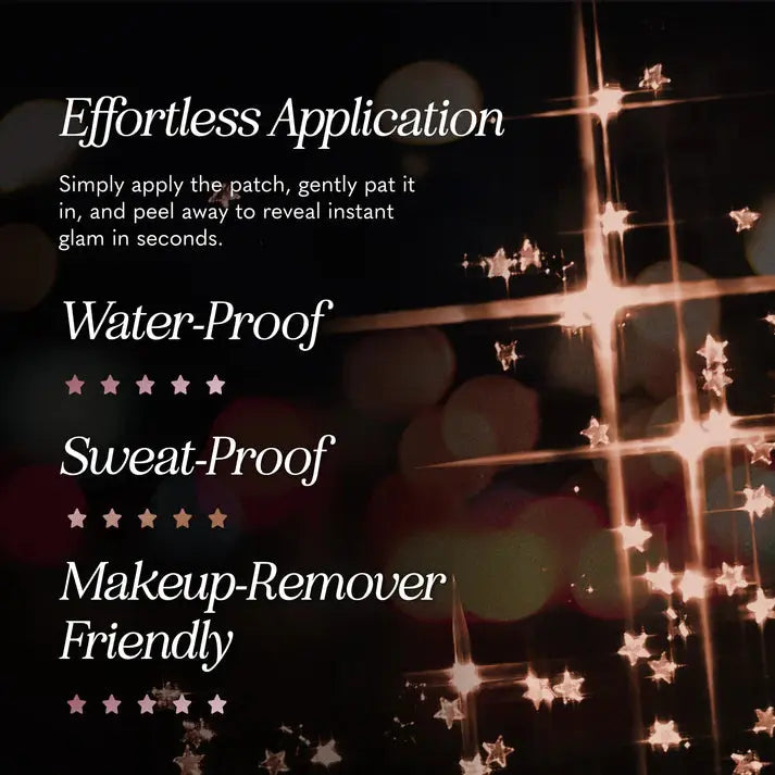 Grâce à la technologie pratique « appuyer, tapoter, peler », vous pouvez les appliquer en quelques secondes. Pas de chichi, juste un look étincelant instantané qui dure toute la journée. Ces patchs peuvent durer jusqu'à 3 jours ! Vous pouvez également les éliminer facilement en utilisant un nettoyant à base d’huile.