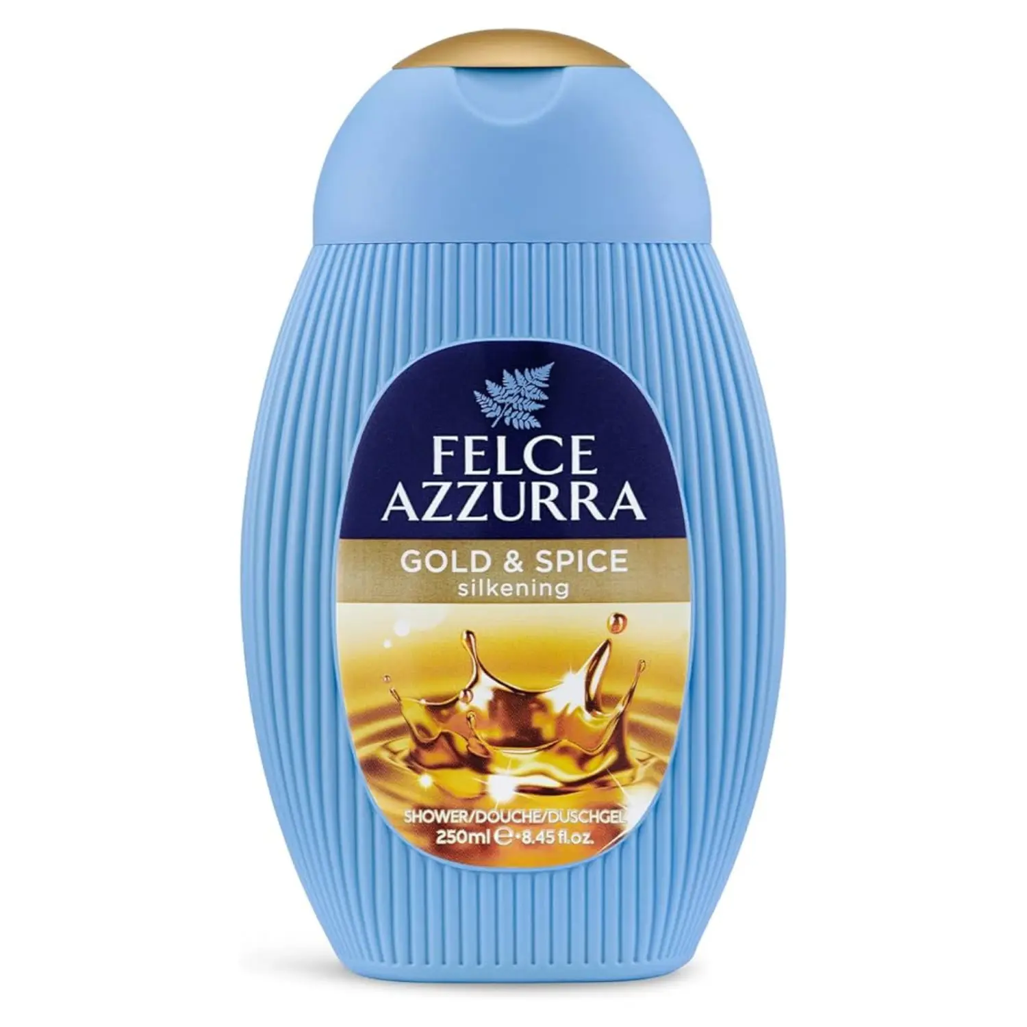 Le Felce Azzurra Gold and Spices Silkening Essence Shower Gel est fait pour toi si tu aimes les parfums chauds et épicés, aussi envoûtants qu’élégants. Ce gel douche luxueux mêle des épices enivrantes à de la vanille sucrée et des notes boisées chaleureuses qui enveloppent tes sens. Résultat : une expérience olfactive qui te transporte dans un univers de confort et de raffinement.