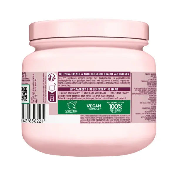 Le Garnier Loving Blends Grape Moisture Mask est ton indispensable pour des cheveux intensément hydratés et éclatants. Ce masque capillaire crémeux est enrichi en eau de raisin et en antioxydants issus de l’huile de pépins de raisin, et offre un véritable boost d’hydratation aux cheveux secs et ternes. Sa formule hydrate intensément, régénère la fibre capillaire et protège ta chevelure des agressions quotidiennes comme la chaleur, la pollution ou les rayons UV.