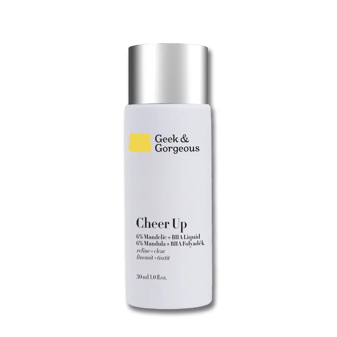 Le Geek & Gorgeous Cheer Up 6% Mandelic + BHA Liquid Exfoliant 30 ml est un exfoliant liquide conçu pour les peaux mixtes. Cet exfoliant élimine les cellules mortes et réduit visiblement l'apparence des pores dilatés. Convient à tous les types de peau – tu souffres d’acné, de pores dilatés ou de points noirs ? Alors cet exfoliant est fait pour toi !