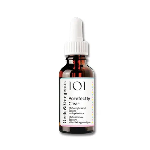 Le Geek & Gorgeous Porefectly Clear Serum est un sérum spécialement développé pour les peaux grasses et impures. Vous souffrez d'impuretés et de pores obstrués ? aucun problème! La formule est enrichie de 2% d'acide salicylique, cet ingrédient s'attaque aux pores dilatés et aux points noirs. Ce sérum élimine également toutes les cellules mortes et la saleté de votre peau, pour que vous puissiez profiter d'une peau fraîche !