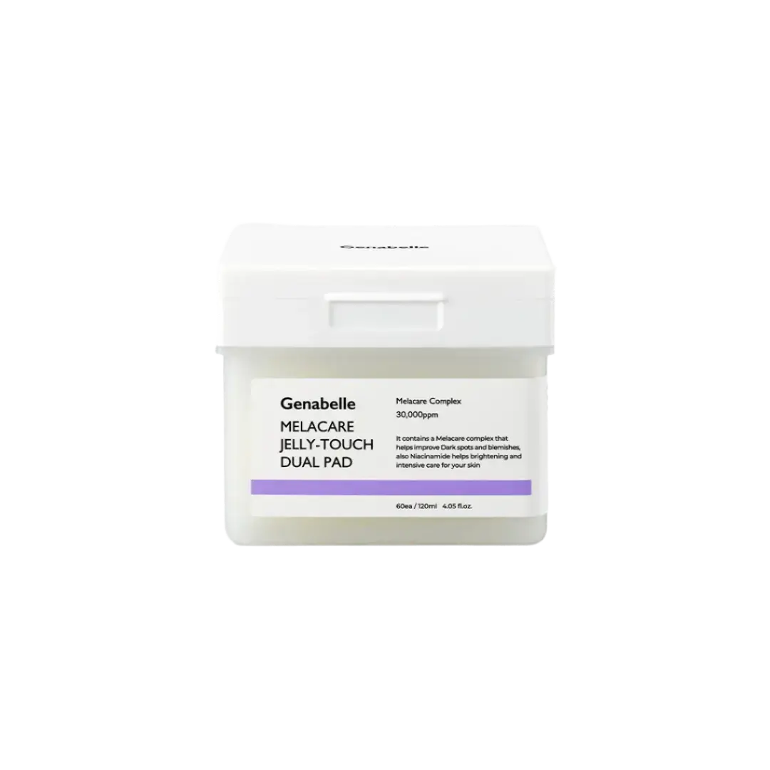 De Genabelle Melacare Jelly Touch Dual Pad is jouw nieuwe holy grail als je last hebt van pigmentvlekken, dofheid of acne littekens. Deze pads zijn doordrenkt met het krachtige Melacare Complex – met 30.000 ppm niacinamide, tranexaminezuur en wild tijm extract – en helpen zichtbaar om je huid te egaliseren en te laten stralen. Perfect voor de gevoelige of onzuivere huid!