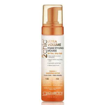 La Giovanni 2chic Ultra Volume Foam Mousse est une mousse coiffante qui donne du volume à vos cheveux, sans les rendre collants ou lourds! Cette mousse fournit également un merveilleux parfum de mandarine et de papaye dans vos cheveux, à quel point est-ce délicieux?!