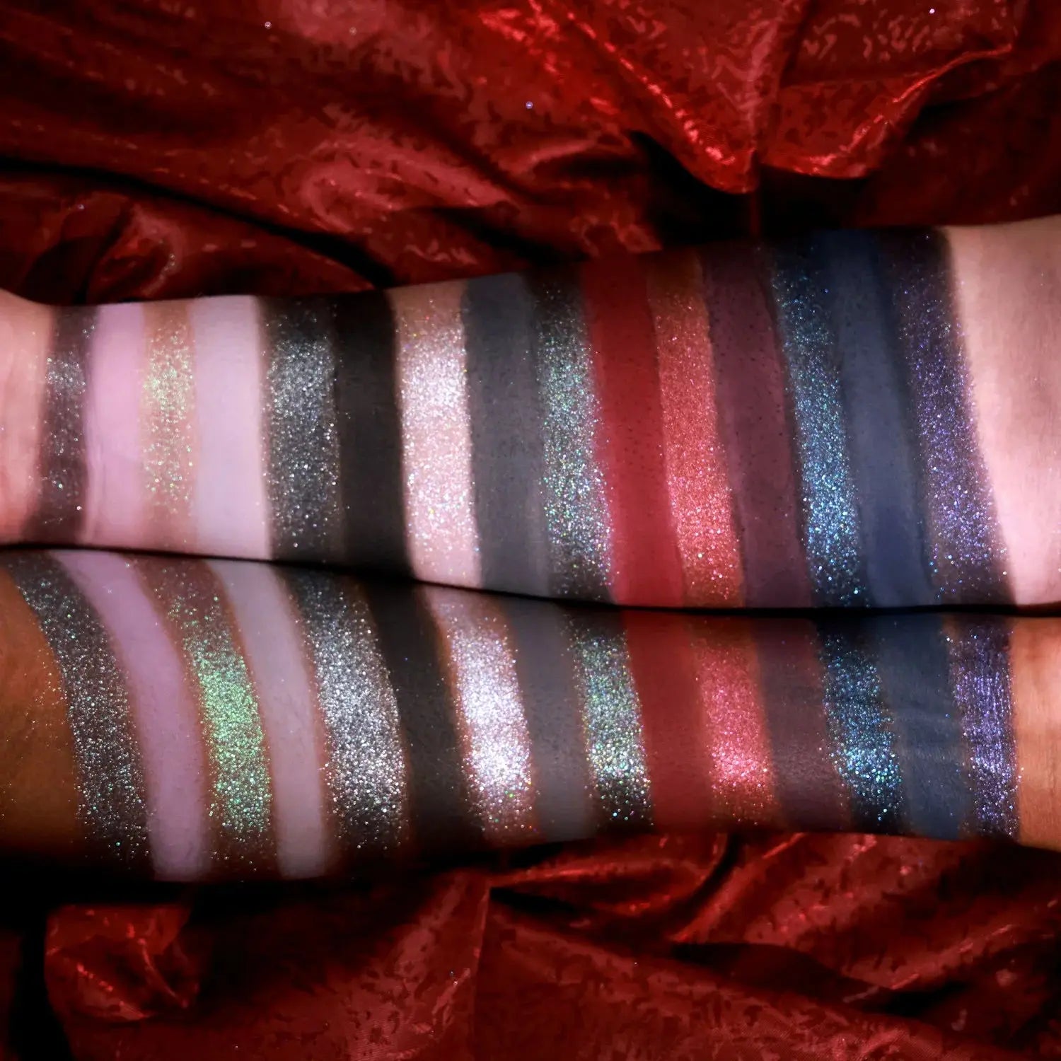 Vegetarian/Lion/Century/Thirst/Renesmee/Edward/Gifted/Mind Reader/Volturi : Talc, Mica, Caprylic/Capric Triglyceride, Calcium Aluminum Borosilicate, Calcium Sodium Borosilicate, Synthetic Fluorphlogopite, Ethylhexyl Palmitate, Silica, Bis-diglyceryl Polyacyladipate-2, Polyisobutene, Dimethicone, Aluminum Starch Octenylsuccinate, Magnesium Stearate, Triethoxycaprylylsilane, Tridecyl Trimellitate, Phenoxyethanol, Polyethylene, Tin Oxide, Tocopheryl Acetate, Caprylyl Glycol, 1,2-Hexanediol, Microcrystalline Wax, Paraffin, Methicone, Dimethicone/Vinyl Dimethicone Crosspolymer, Ethylhexylglycerin, Trimethylsiloxysilicate. Dioxyde de titane (CI 77891), Oxyde de fer noir (CI 77499), Oxyde de fer rouge (CI 77491), Rouge 27 Al Lake (CI 45410), Rouge 7 Ca Lake (CI 15850), Noir 2 (CI 77266), Ferrocyanure ferrique d’ammonium (CI 77510), Bleu 1 Al Lake (CI 42090), Rouge 6 (CI 15850), Rouge 6 Ba Lake (CI 15850).