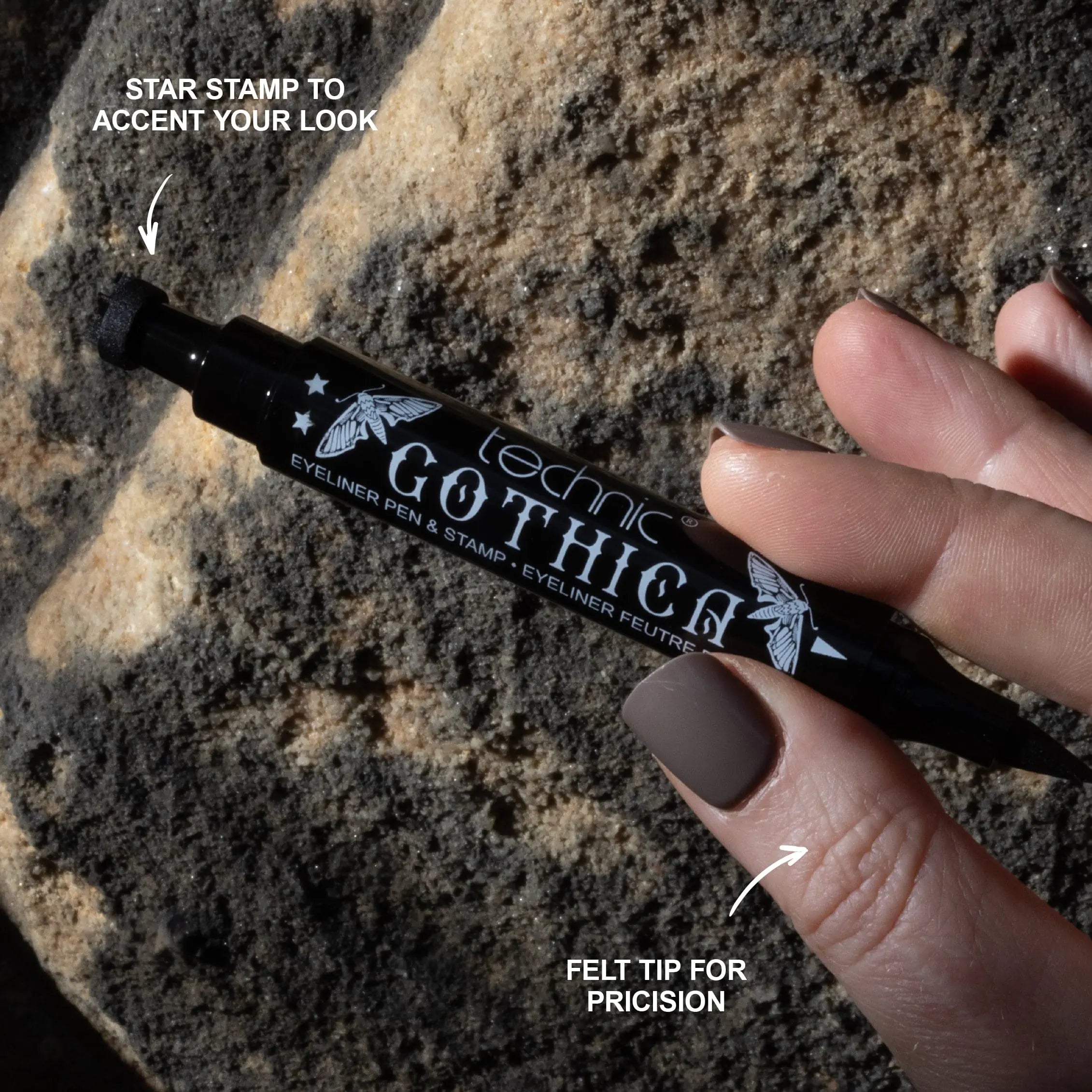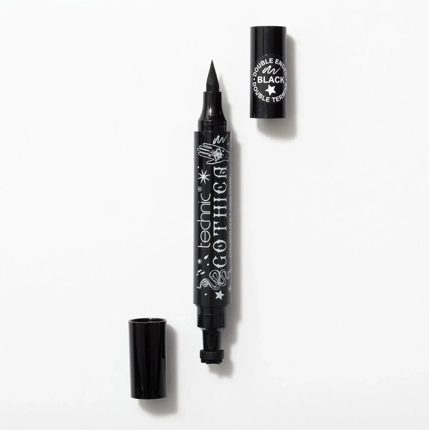 Le Technic Gothica Eyeliner Pen & Star Stamp est parfait pour tous ceux qui veulent ajouter une touche en plus à leur look. Cet eyeliner double embout possède d’un côté une pointe feutre fine pour des lignes nettes et fluides, et de l’autre un tampon étoile adorable pour des accents magiques. Que tu ajoutes une petite étincelle à ton look quotidien ou que tu optes pour une vibe fantasy complète: c’est ton outil incontournable !