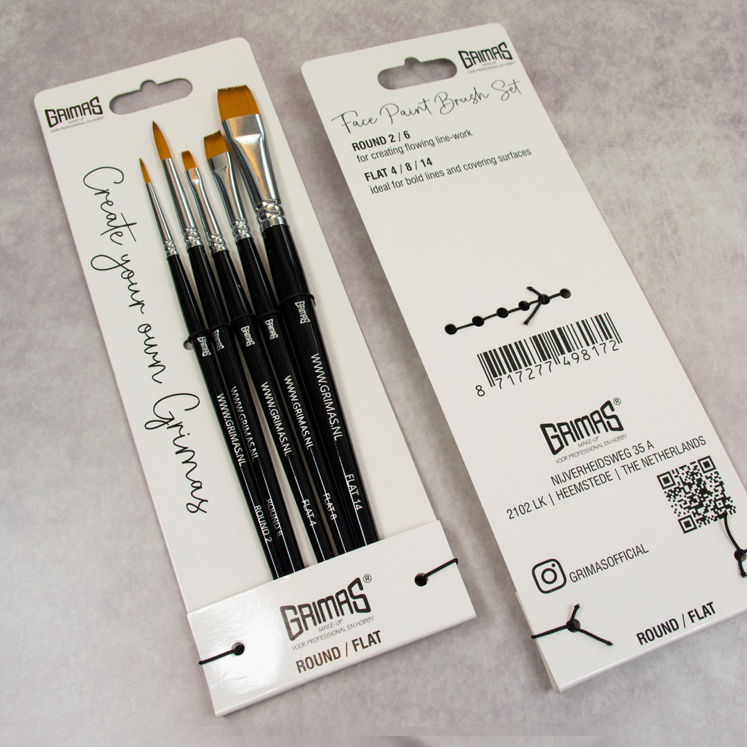 Le Grimas Face Paint Brush Set Round Flat est un set de pinceaux polyvalent qui te permet de créer facilement des maquillages artistiques et créatifs. Que tu sois débutant ou déjà expérimenté, ce set contient tout ce qu’il faut pour réaliser des lignes fluides, des formes nettes et remplir de plus grandes zones. Parfait pour le face painting lors de fêtes, festivals ou simplement à la maison.