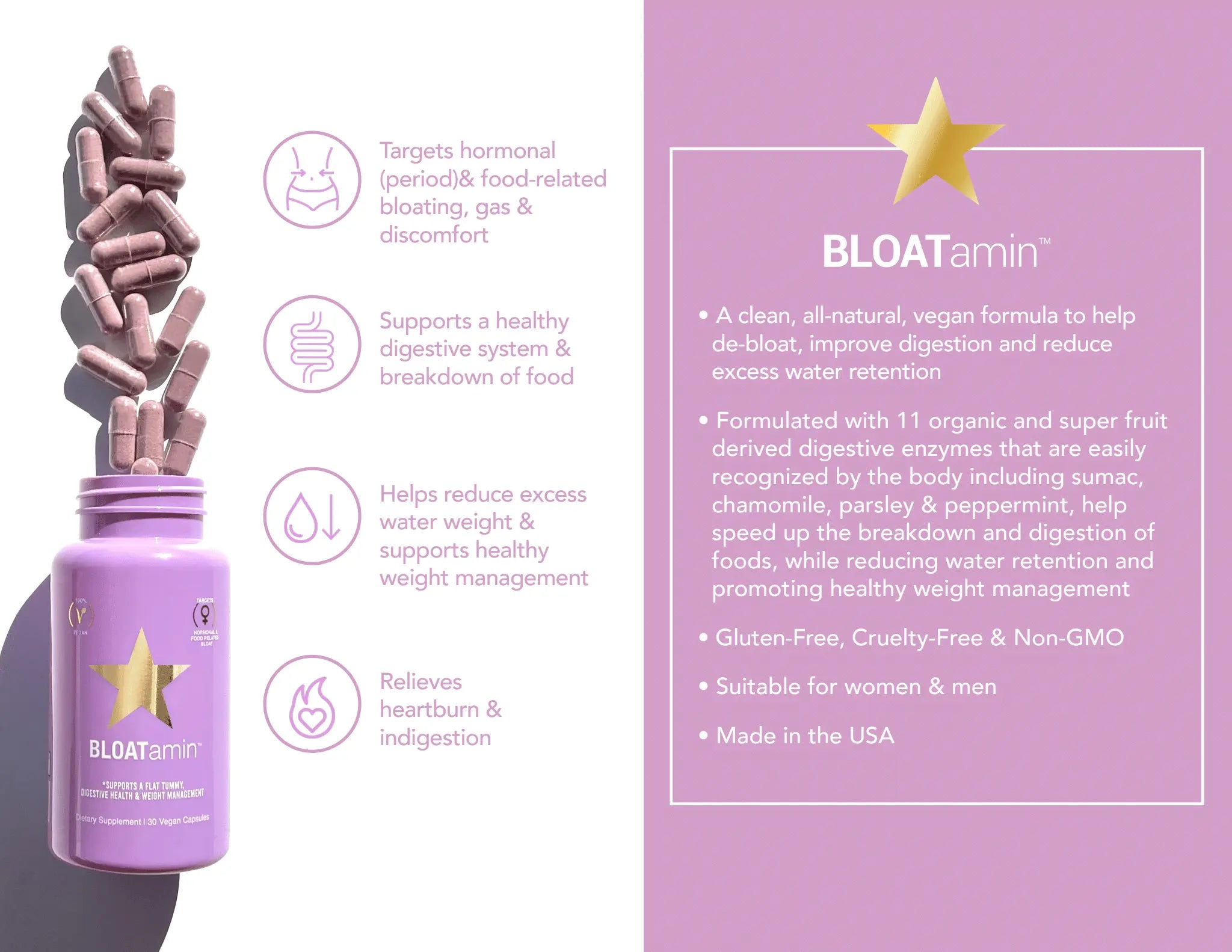 Les Hairtamin Bloatamin Capsules aident votre digestion à mieux fonctionner ! Ces capsules contiennent un mélange de 11 enzymes à base de plantes et de super fruits, qui ciblent les problèmes digestifs courants, notamment les ballonnements, les flatulences, les douleurs à l'estomac et autres malaises.