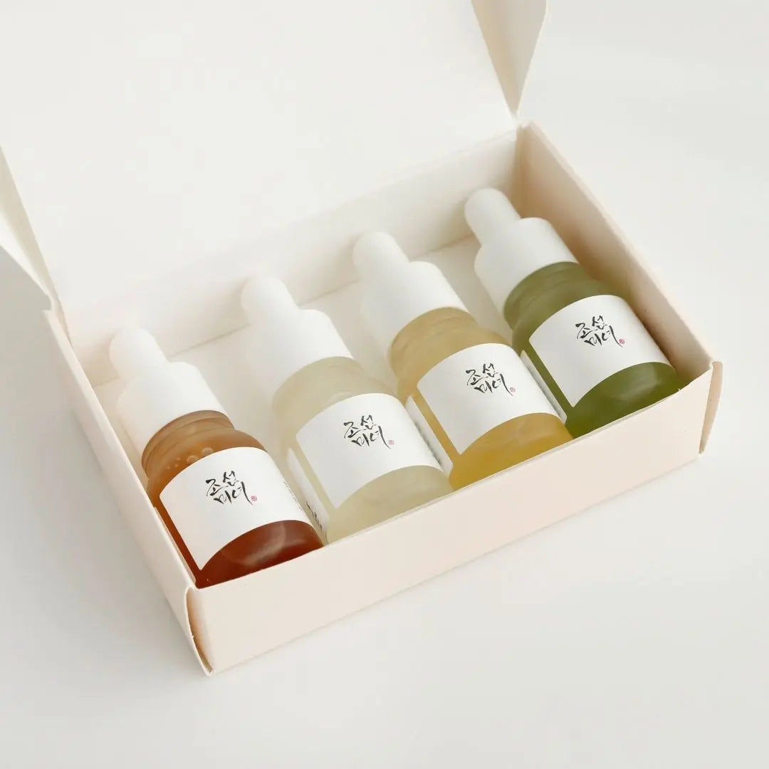 Sérum Revive : eau de racine de Panax Ginseng, eau, butylène glycol, filtrat de sécrétion d'escargot, dipropylène glycol, 1,2-hexanediol, glycérine, niacinamide, propanediol, tréhalose carbomère, trométhamine, gomme de xanthane, extrait de Centella Asiatica, extrait de Ganoderma Lucidum (champignon) , Extrait de racine de Panax Ginseng, extrait de malt, polyacrylate de sodium, adénosine, copolymère acrylate de glycéryle/acide acrylique, edta disodique, extrait de Phellinus Linteus, hyaluronate de sodium, acide hyaluronique hydrolysé, extrait de fruit de Forsythia Suspensa, racine de fleur de Lonicera Japonica (extrait de chèvrefeuille, scutellaire) Extrait, hyaluronate de sodium acétylé.