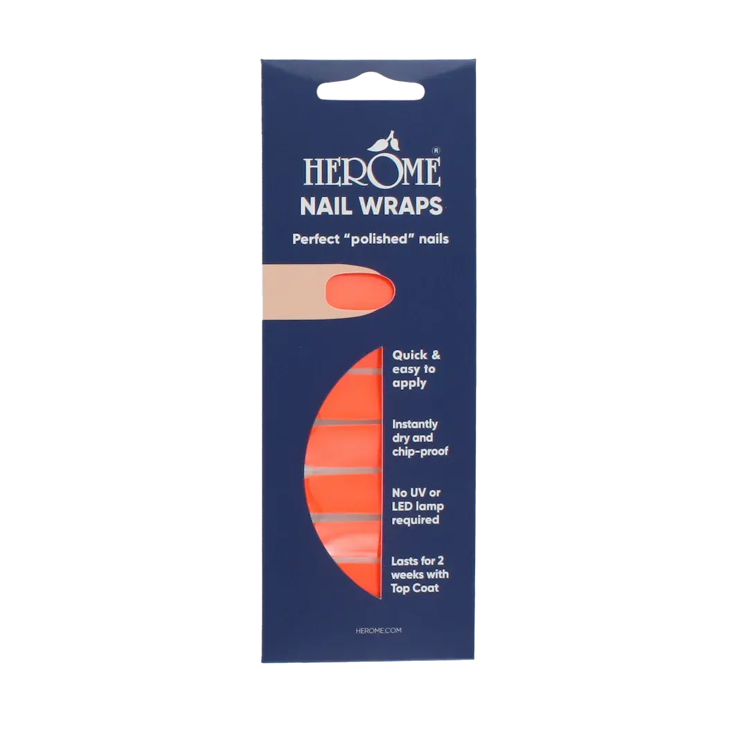 Les Nail Wraps Herôme Neon Tangerine sont votre raccourci vers des ongles flashy et estivaux en un rien de temps. Ces wraps orange vif apportent une manucure parfaite sans temps de séchage, sans vernis et sans bavures. En 15 minutes seulement, vous obtenez une manucure impeccable qui dure jusqu'à deux semaines !