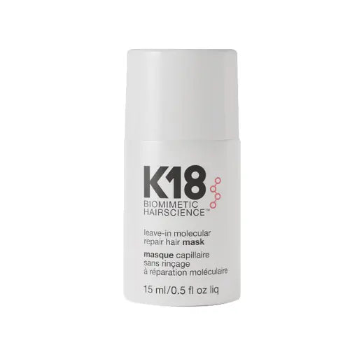 The K18 Hair Leave-in Molecular Repair Mask fonctionne comme un masque intensif qui restaure les cheveux abîmés et décolorés. Lorsque les traitements chimiques ont cassé et abîmé vos cheveux, ce traitement permanent assure que les cheveux sont à nouveau adoucis et redeviennent plus élastiques !