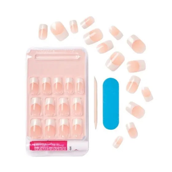 La Kiss Everlasting French Nail Kit Wedding Gown vous offre une manucure française parfaite à la maison en un instant ! Plus de soucis avec les autocollants et 3 vernis différents, collez simplement avec la colle incluse et vos ongles auront l'air de sortir de la manucure.