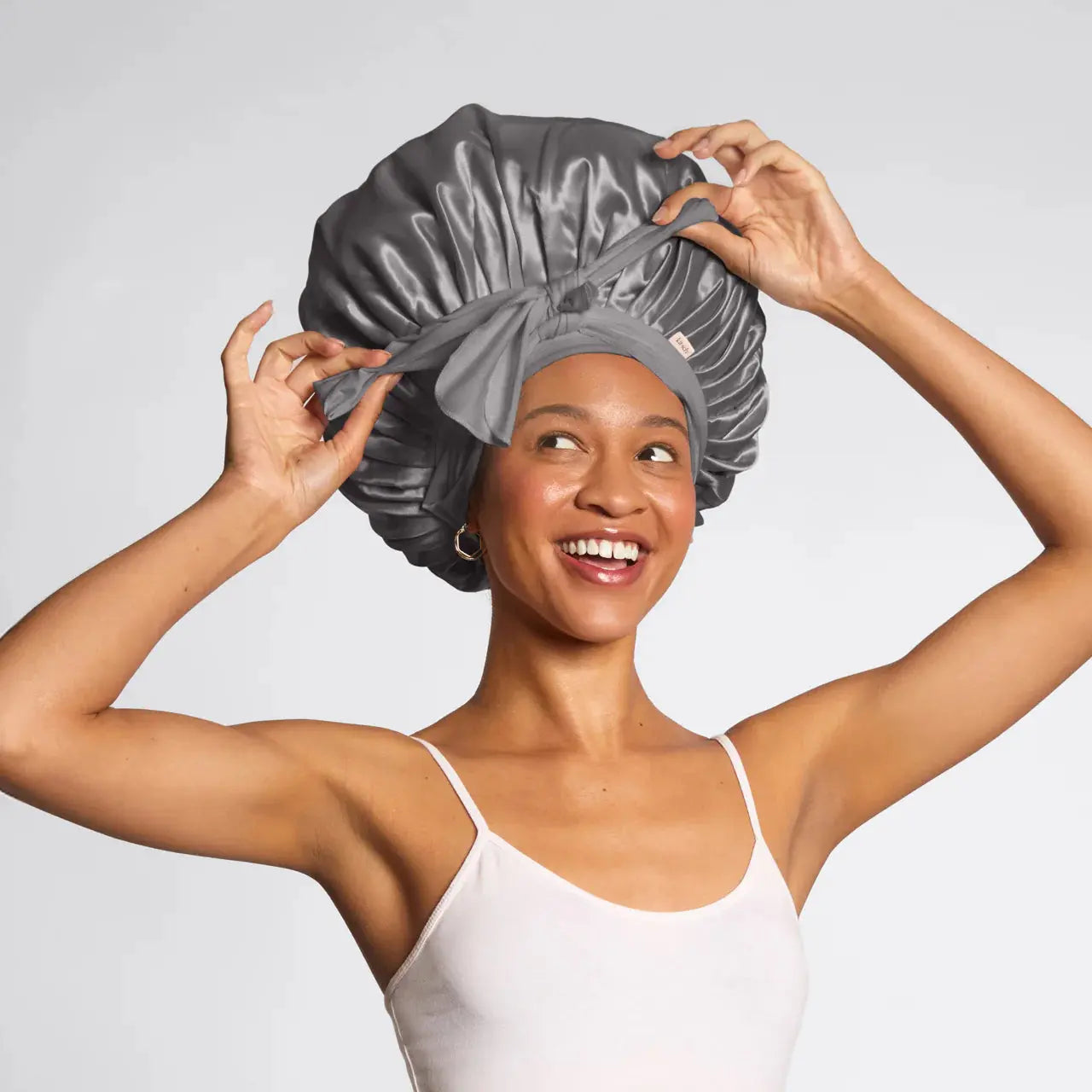 Grâce à sa coupe spacieuse, ce bonnet convient parfaitement aux cheveux épais, bouclés et longs. Les liens réglables extra-longs assurent un maintien parfait sans trop serrer. Idéal pour être porté avec des bigoudis sans chaleur ou pour protéger vos boucles naturelles. Et soyons honnêtes – il est aussi super stylé pour votre routine du soir !