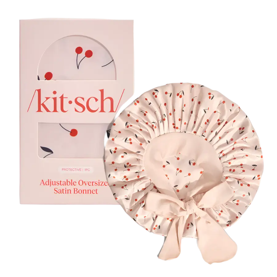 Le Kitsch Adjustable Oversized Satin Bonnet Cherry Print est ton accessoire de nuit indispensable pour des cheveux sains et éclatants ! Ce bonnet oversize est fabriqué en satin double couche de haute qualité qui protège tes cheveux des frottements, des frisottis et de la casse pendant la nuit. Que tu optes pour des heatless curls ou que tu souhaites préserver tes boucles naturelles – ce bonnet garde ta coiffure intacte.