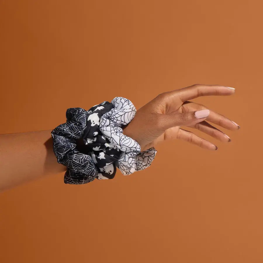 Les Kitsch Cloud Scrunchies Spiderweb sont les incontournables spooky-cute pour tes cheveux d’Halloween ! Avec un mélange de designs ghost, toile d’araignée et noir uni, elles ajoutent instantanément une touche ludique à n’importe quel look: sans avoir besoin de costume.
