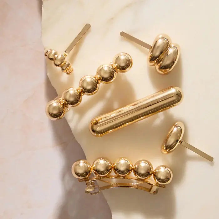 Les Kitsch Metal Pony Pins Gold sont le parfait mélange de pratique et de style: idéales pour toutes vos coiffures du quotidien ! Ces élégantes barrettes dorées maintiennent vos mèches bien en place toute la journée. Que vous portiez une frange lissée, un messy bun ou un half-up look, ces pins assurent tenue et chic en un seul geste.
