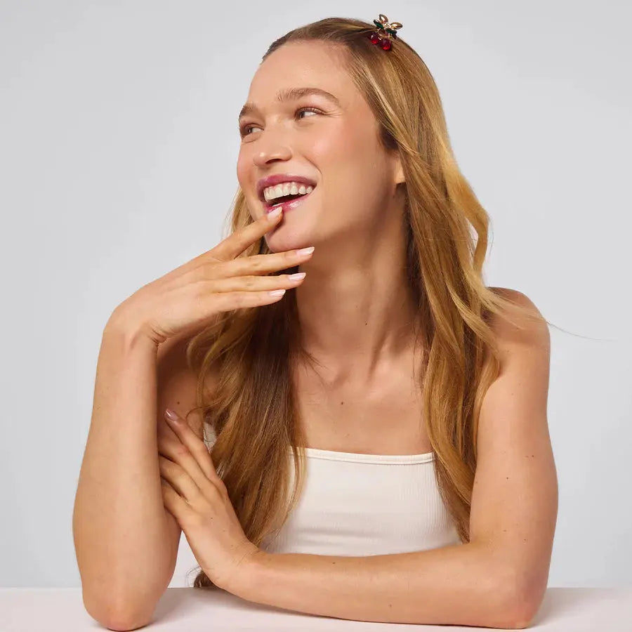 Le Kitsch Mini Rhinestone Claw Clips 2pc Set Cherry est la touche finale parfaite pour ta coiffure ! Ces adorables mini pinces sont super faciles à utiliser et idéales pour attacher de petites mèches – que tes cheveux soient fins, épais, courts ou longs.