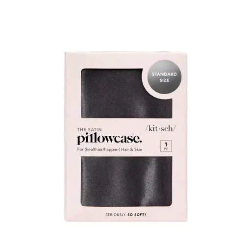 Avec la Kitsch Satin Pillowcase Charcoal, vous dormirez bien ! Une taie d'oreiller en satin n'est pas seulement bonne pour vos cheveux, mais aussi pour votre peau ! Le satin garantit que vous avez moins d'acné, vos produits de soin ne pénètrent pas dans la taie d'oreiller et vos cheveux deviennent moins crépus et moins statiques.