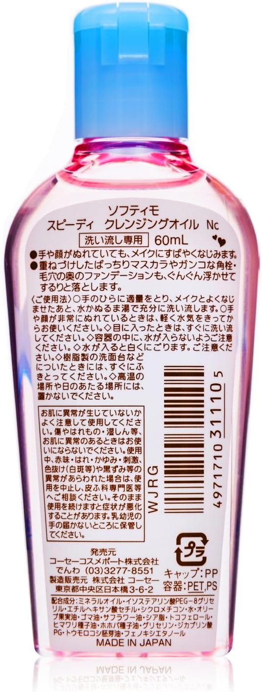 Le Kose Softymo Speedy Cleansing Oil 60 ml. est une huile nettoyante qui nettoie et purifie ta peau en profondeur sans la dessécher. Cette huile magique a été spécialement formulée pour éliminer maquillage, impuretés et saletés d’un seul geste. Sa texture légère et soyeuse glisse facilement sur la peau et dissout instantanément les traces de maquillage – sans effet desséchant.