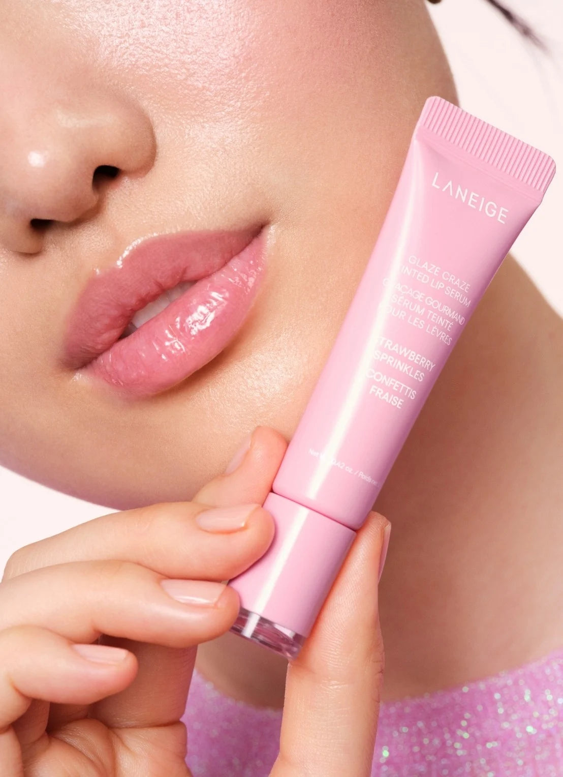 Le Laneige Glaze Craze Tinted Lip Serum en Strawberry Sprinkles est une gourmandise juteuse pour vos lèvres, comme si vous veniez de manger un bonbon à la fraise, mais en mieux ! Ce sérum à lèvres hybride associe une teinte modulable à un soin intensif des lèvres. Sa formule est composée à 95 % d'ingrédients soin de la peau et glisse sur les lèvres comme un sérum pour une finition lisse, brillante et non collante.
