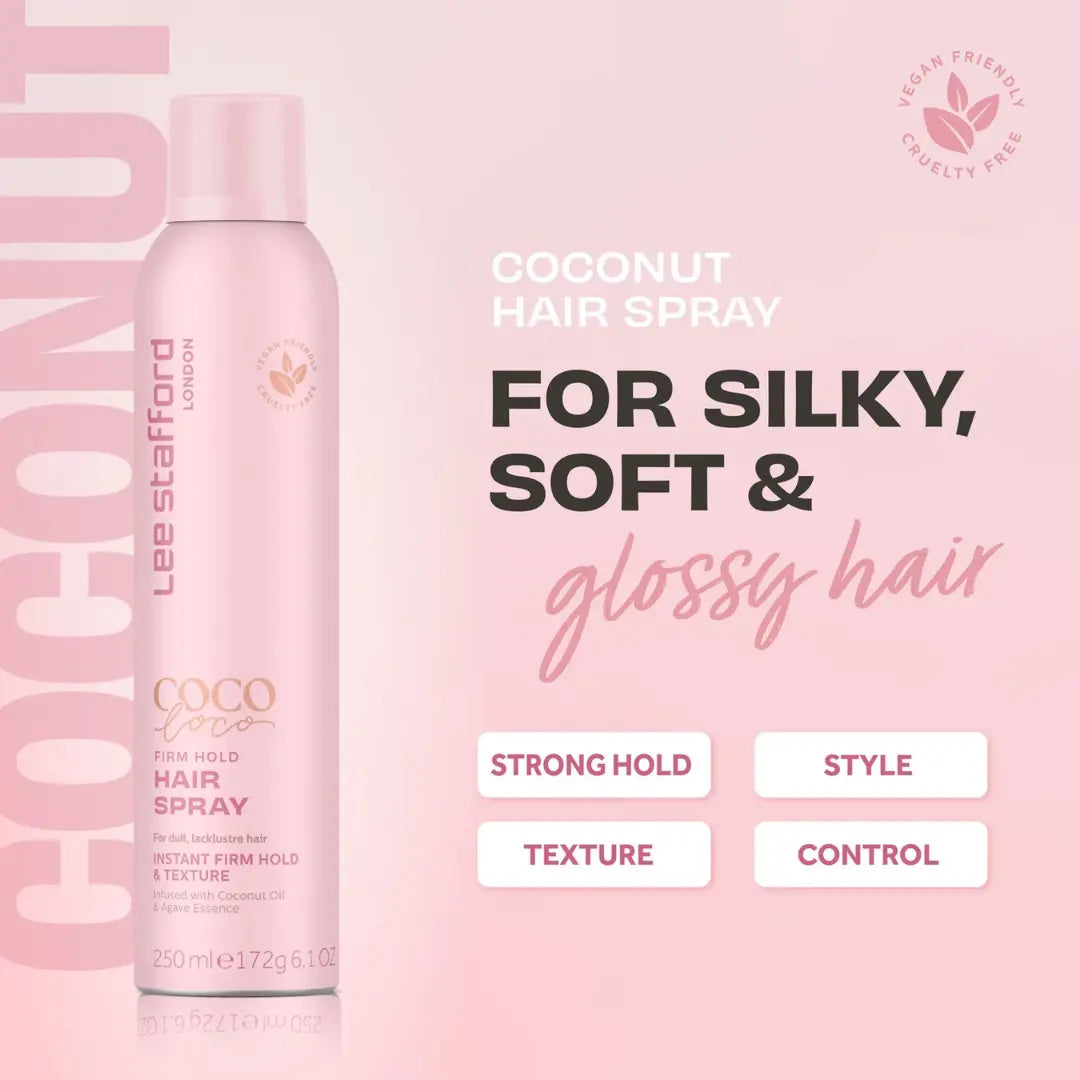 Le Lee Stafford CoCo LoCo & Agave Firm Hold Hair Spray est un merveilleux laque à l'odeur de noix de coco qui garantit que vos cheveux restent en forme toute la journée! Grâce à sa formule unique, cette laque laisse vos cheveux soyeux, sans couche dure ou collante. Besoin d'une coupe de cheveux différente, mais la laque est-elle toujours dedans? Pas de problème: parce que vos cheveux restent doux après l'utilisation de ce spray, vous pouvez facilement vous brosser les cheveux.