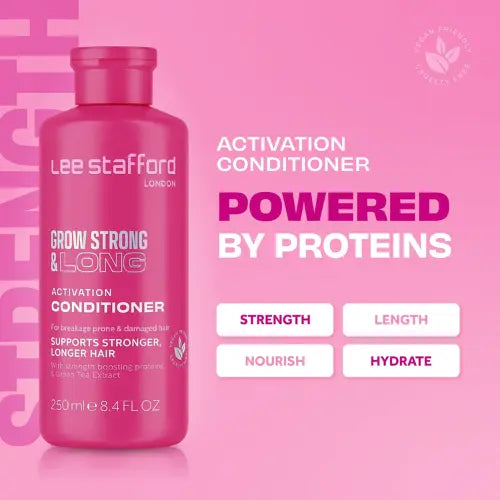 Le Lee Stafford Grow Long & Strong Activation Conditioner est un est un véritable revitalisant indispensable pour tous ceux dont les cheveux ont besoin d'un coup de pouce supplémentaire ! Cet après-shampooing stimule la croissance des cheveux et protège les cheveux. Le résultat? Des mèches longues, fortes et saines !