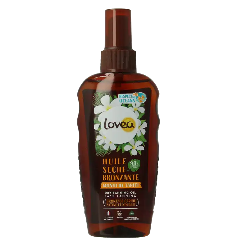 Le Lovea Dry Tanning Oil Tahiti Monoi est votre allié idéal pour un teint hâlé et lumineux sous le soleil. Cette huile de bronzage sèche est enrichie du parfum emblématique du monoï et laisse la peau douce comme de la soie, tout en procurant un éclat naturel et doré. Parfait pour les peaux bronzées ou ternes qui ont besoin d’un coup d’éclat estival.