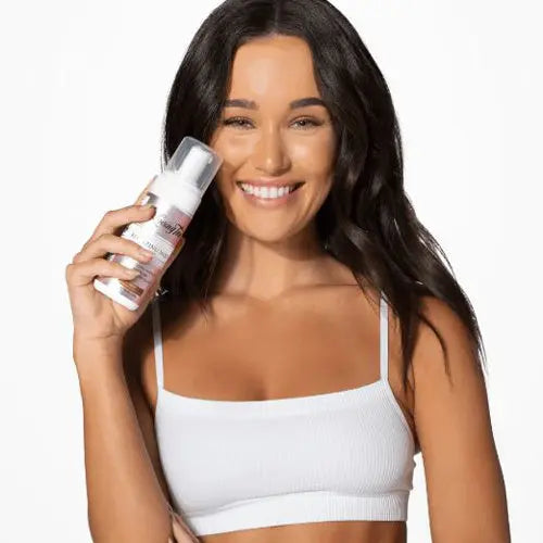 - Pompez une petite quantité de mousse sur votre gant applicateur Loving Tan Deluxe et étalez-le sur votre peau en mouvements circulaires.