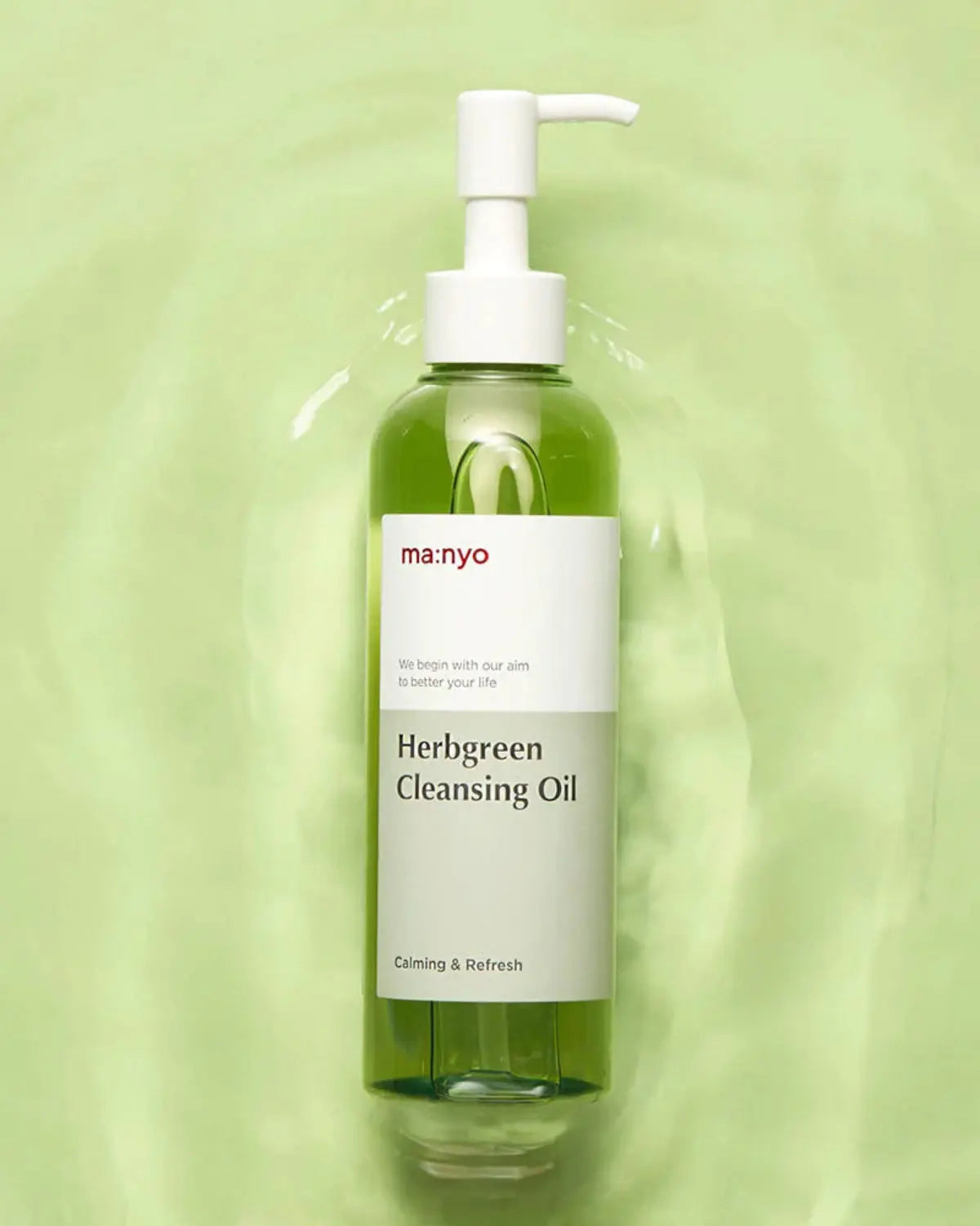 La Ma:nyo Herb Green Cleansing Oil est une huile nettoyante douce mais efficace qui dissout le maquillage, le sébum et les impuretés sans assécher la peau. Cette huile d’origine végétale se transforme en une émulsion lactée au contact de l’eau, purifiant la peau en profondeur tandis que des extraits de plantes apaisantes calment et rafraîchissent.