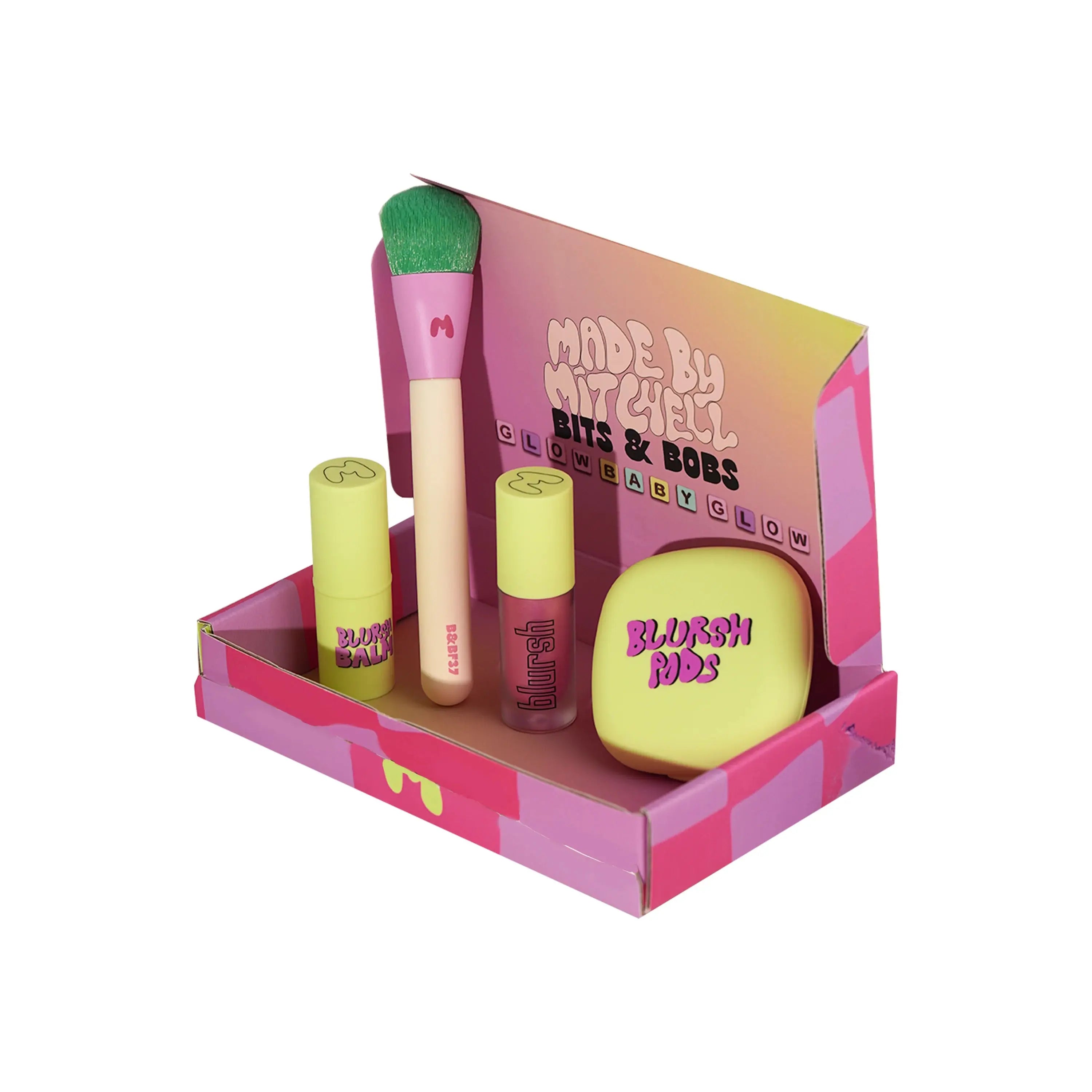 Le Made By Mitchell Bits & Bobs Glow Baby Glow est le bundle parfait pour les fans de couleurs audacieuses, de glow et d’une bonne dose de nostalgie Y2K. Ce set tout-en-un issu de la célèbre Bits & Bobs Collection contient tout ce qu’il vous faut pour blush, highlighter et rayonner comme jamais auparavant.
