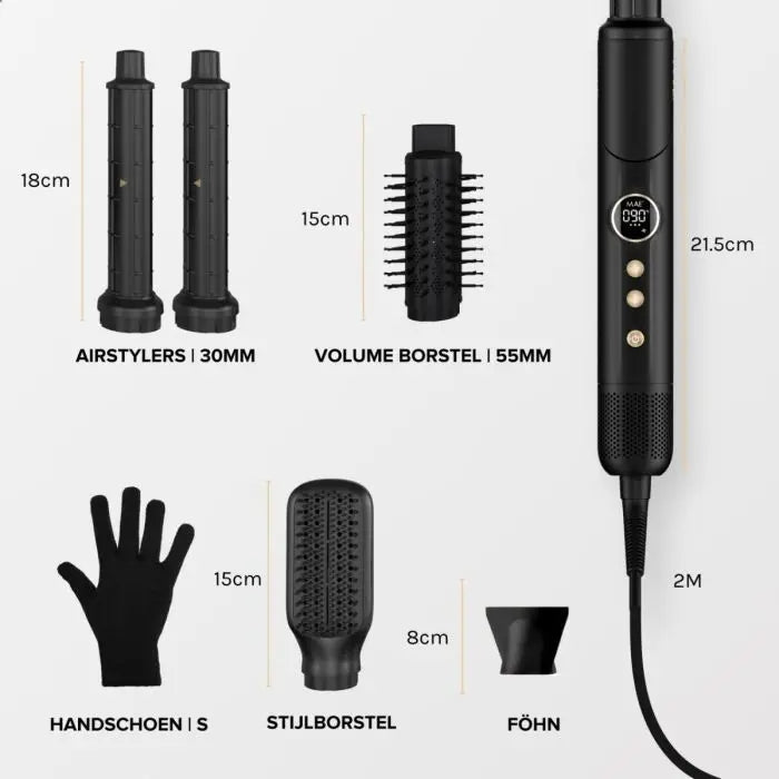 Avec quatre niveaux de chaleur, un moteur puissant mais silencieux et un embout rotatif, tu gardes toujours un contrôle total sur ton look. Utilise la fonction Coldshot pour fixer ta coiffure, et range tes accessoires dans l’élégante boîte de rangement en cuir. Convient à tous les types de cheveux: lisses ou bouclés : le MAE Airstyler Pro II est ton alternative abordable aux outils de coiffage haut de gamme.