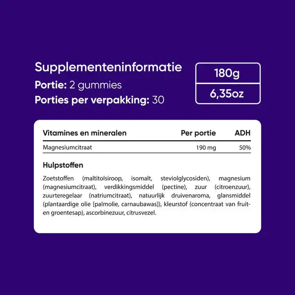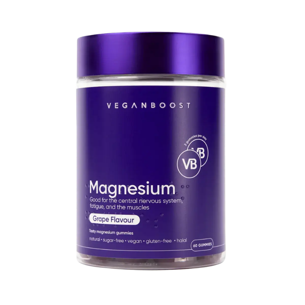 Les Veganboost Magnesium Gummies sont ta nouvelle façon préférée de maintenir un bon niveau de magnésium – avec un délicieux goût de raisin ! Ces gummies contiennent du citrate de magnésium, une forme bien absorbée de magnésium qui aide à réduire la fatigue, soutient la fonction musculaire et favorise la concentration. Pas de comprimés ni de poudres – juste deux gummies par jour, et c’est parti !