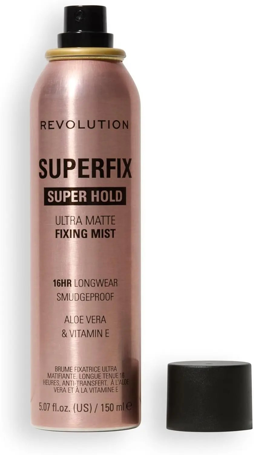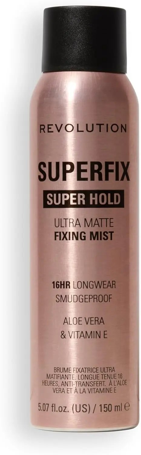 Le Makeup Revolution Super Fix Misting Spray est ton arme ultime pour un maquillage ultra-mat longue tenue. Ce spray fixateur léger fixe instantanément ton maquillage et offre un fini parfait sans brillance qui tient toute la journée. Grâce à sa formule non collante, il est confortable à porter et compatible avec les produits liquides, en crème ou en poudre.