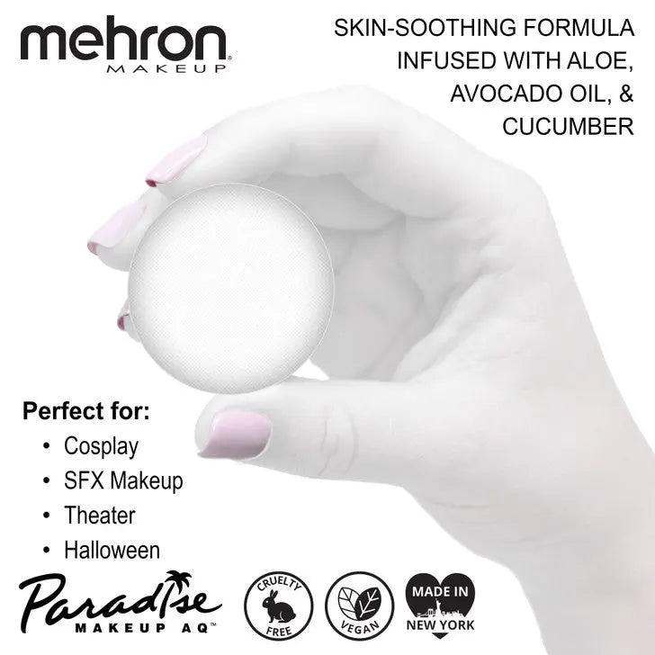 Le Mehron Makeup Paradise Makeup AQ White est un face & body paint activé à l’eau pour celles et ceux qui aiment les pigments intenses et la liberté créative. Cette couleur blanche iconique est éclatante, percutante et parfaite pour Halloween, carnaval, cosplay, looks SFX ou théâtre. Sa formule crémeuse s’applique facilement et sèche sans craqueler. Il suffit d’un peu d’eau pour donner vie à cette teinte.