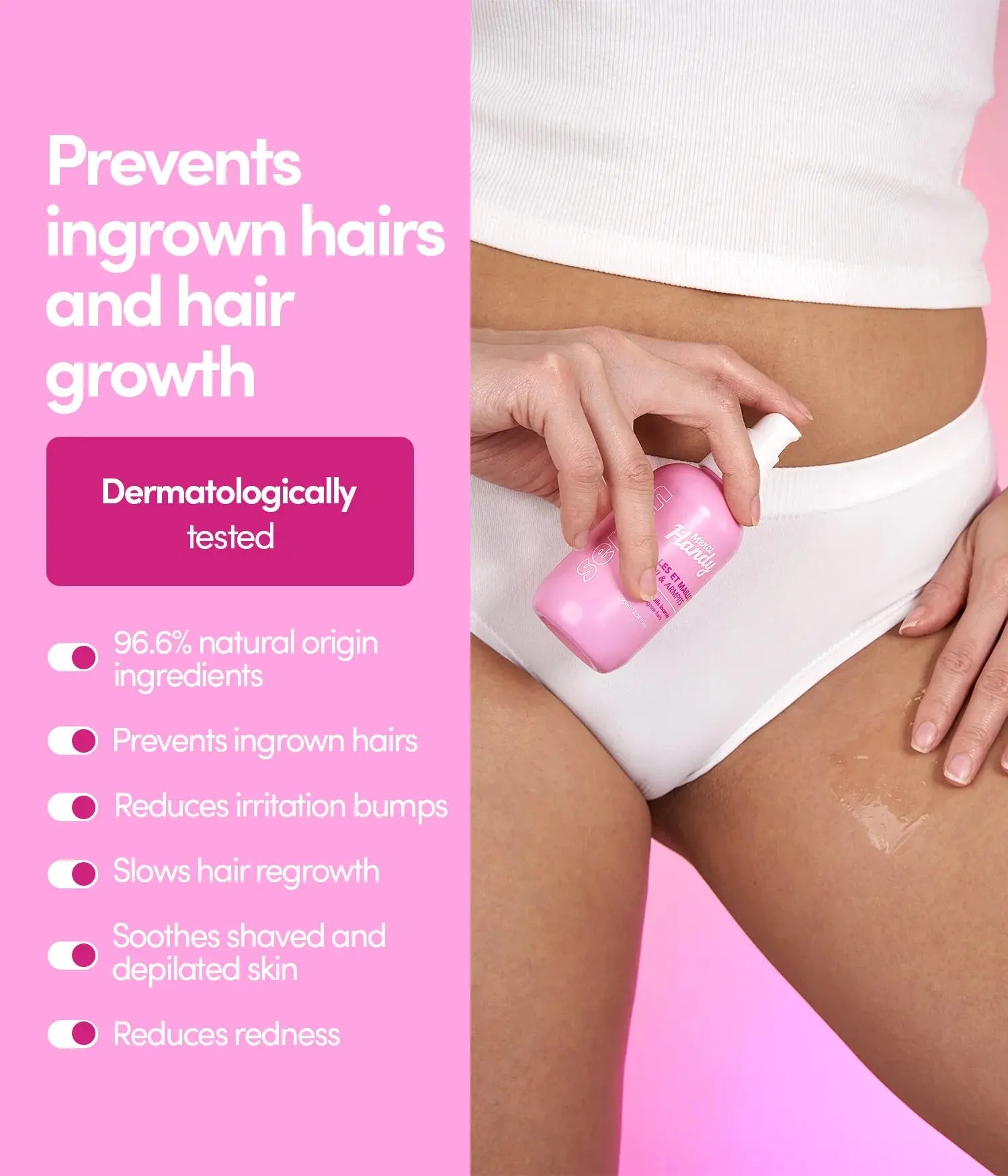 Le sérum corporel Merci Handy Underarms & Bikini Line est ton nouvel indispensable pour une peau douce et nette: sans irritations, bosses ou poils incarnés. Cette formule douce mais puissante a été spécialement conçue pour les zones sensibles comme les aisselles et le maillot : en bref, les zones qui méritent un peu plus d’amour après le rasage ou l’épilation.