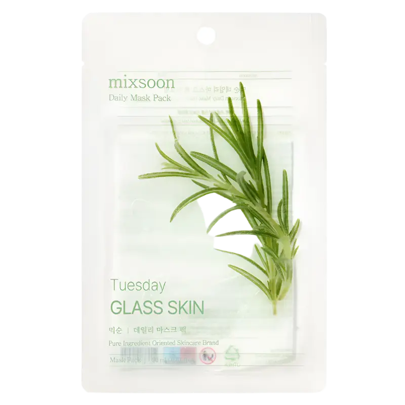 Le Mixsoon Daily Mask Pack Tuesday Glass Skin est ton arme secrète pour un teint lisse, lumineux et ultra-glowy façon “glass skin” ! Ce masque en tissu ultra-fin de 0,2 mm en cellulose végétale est imprégné d’ingrédients apaisants comme le Houttuynia Cordata et le romarin. Il rend la peau visiblement plus calme, plus douce et éclatante – comme après un soin en institut.