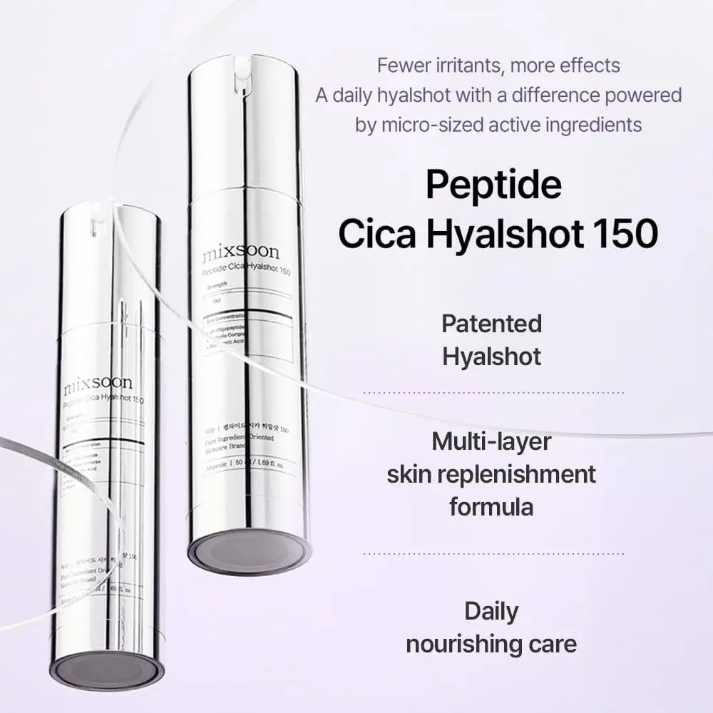 Le Mixsoon Peptide Cica Hyalshot 150 est ton ampoule nouvelle génération si ta peau a besoin de plus de fermeté, d’hydratation et d’une texture améliorée. Cette formule innovante avec technologie microneedle-like aide les actifs à pénétrer plus rapidement et plus profondément dans la peau: pour des résultats optimaux.