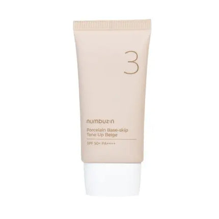 Le Numbuzin No.3 Porcelain Base-skip Tone Up Beige SPF50+ est votre allié ultime pour une peau radieuse et une protection ultime contre les rayons UVA et UVB nocifs.