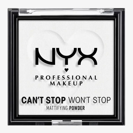 La NYX Professional Makeup Can't Stop Won't Stop Mattifying Powder est une poudre compacte mate avec une formule absorbant l'huile. Idéal donc pour les peaux grasses ! Cette poudre a une finition lisse et mate et la formule spéciale la fait durer toute la journée !