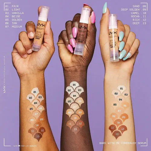 The NYX Professional Makeup Bare With Me Concealer Serum est la dernière édition de la famille Bare With Me. Ce correcteur est parfait pour masquer les imperfections et les taches sèches de votre peau. Ce correcteur couvre l'acné, les taches rouges et les cernes sans rendre votre maquillage pâteux !